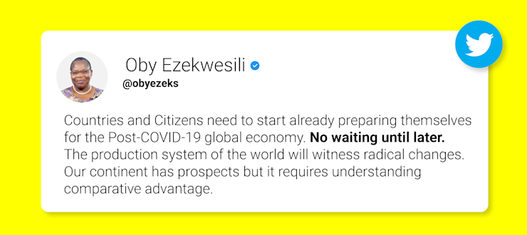 “Now that we see what COVID-19 can do, hopefully what is going to happen is that we are going to realize that a lot of our lives will depend online,” says Dr Ezekwesili, in this article.